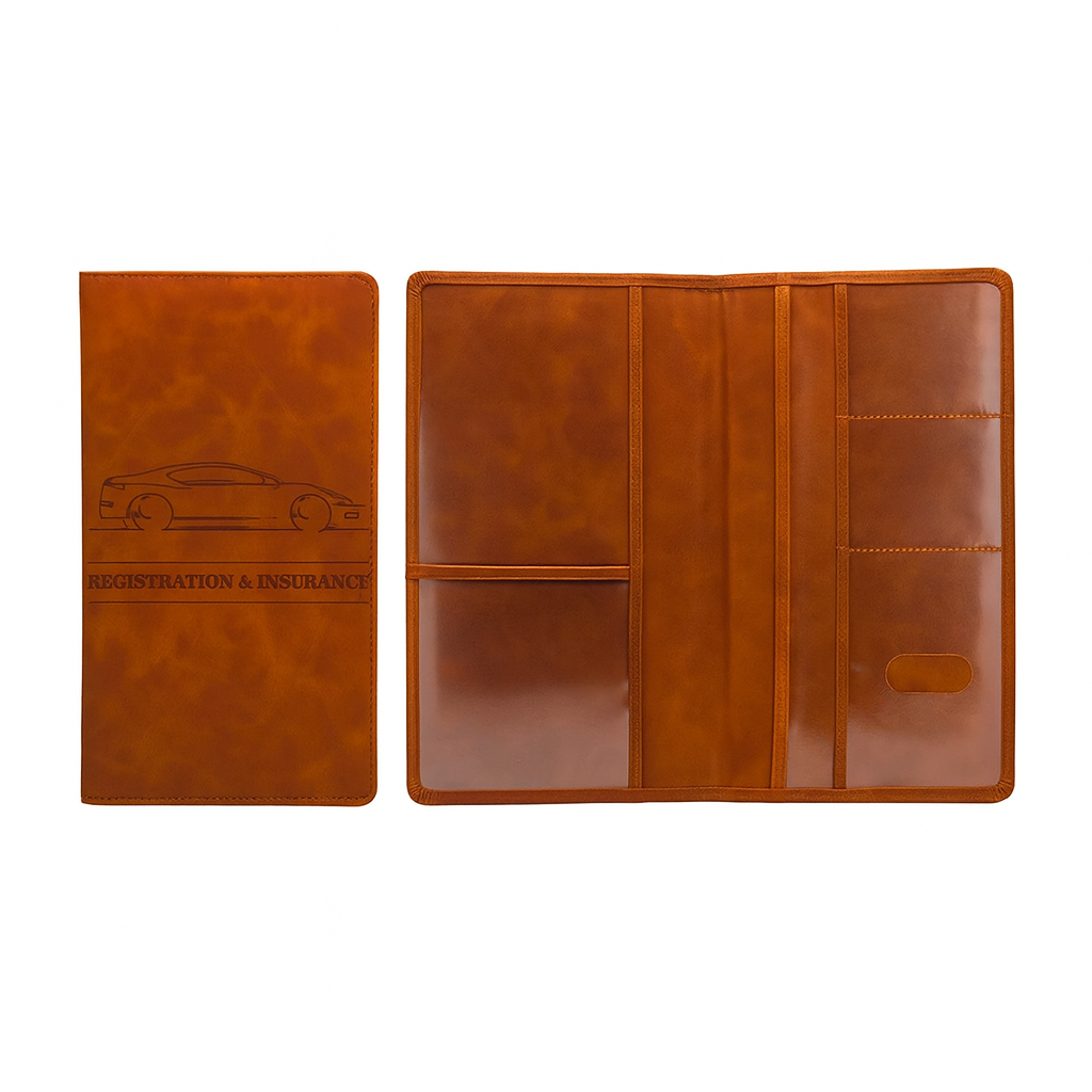 AutoDoc Holder โ a stylish and practical leather organizer designed to keep all your driving documents in one place. It neatly holds your driverโs license, registration, insurance papers, and bank cards. Compact, slim, and perfect for the glove box or door pocket.
