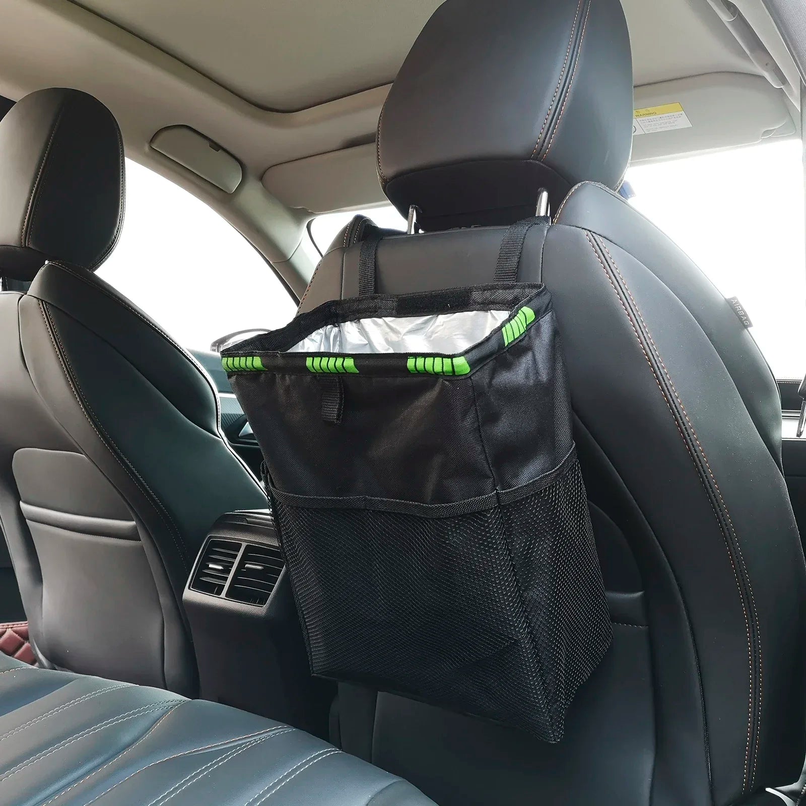 Attach the trash bin to the back of the seat headrest using the adjustable strap.