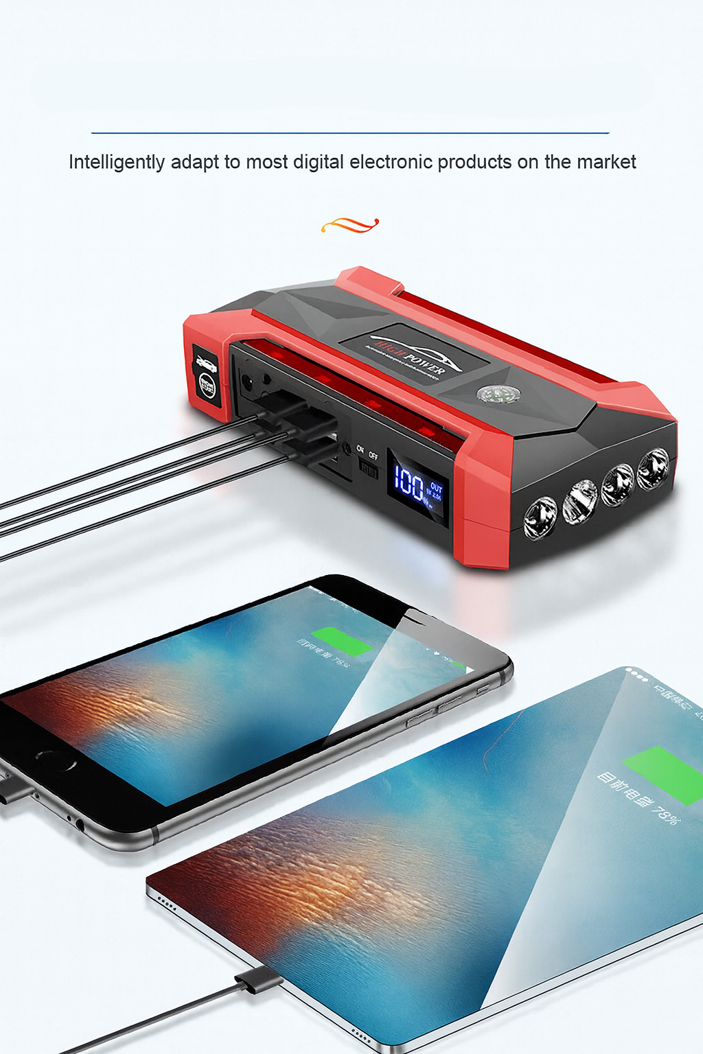 4×USB outputs for phone and gadget charging